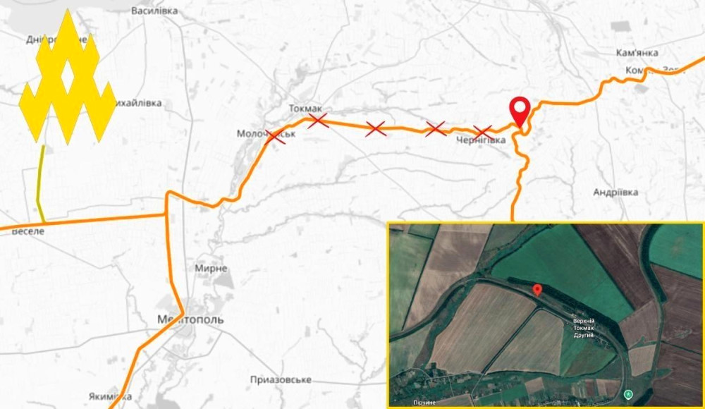 «Наш агент реалізував диверсію на залізничній станції в районі Верхнього Токмака, координати: 47°13'22.2"N 36°18'21.9"E. Пошкодження релейної шафи призвело до блокування вантажів військового призначення в напрямках Запорізької та Херсонської областей», - йдеться в повідомленні.